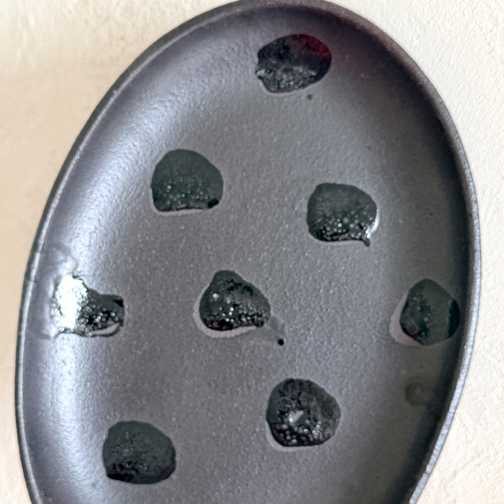도트 패턴 주변 경계선이 유약이 말리거나 흙 색상이 보일 수 있습니다.