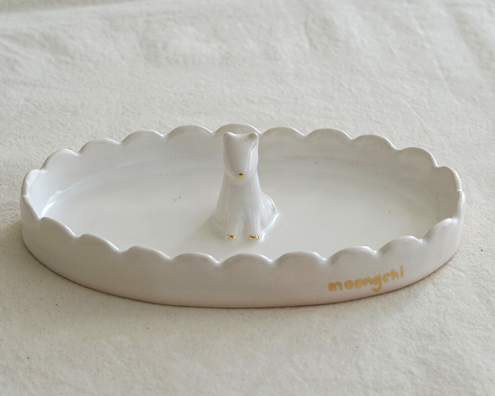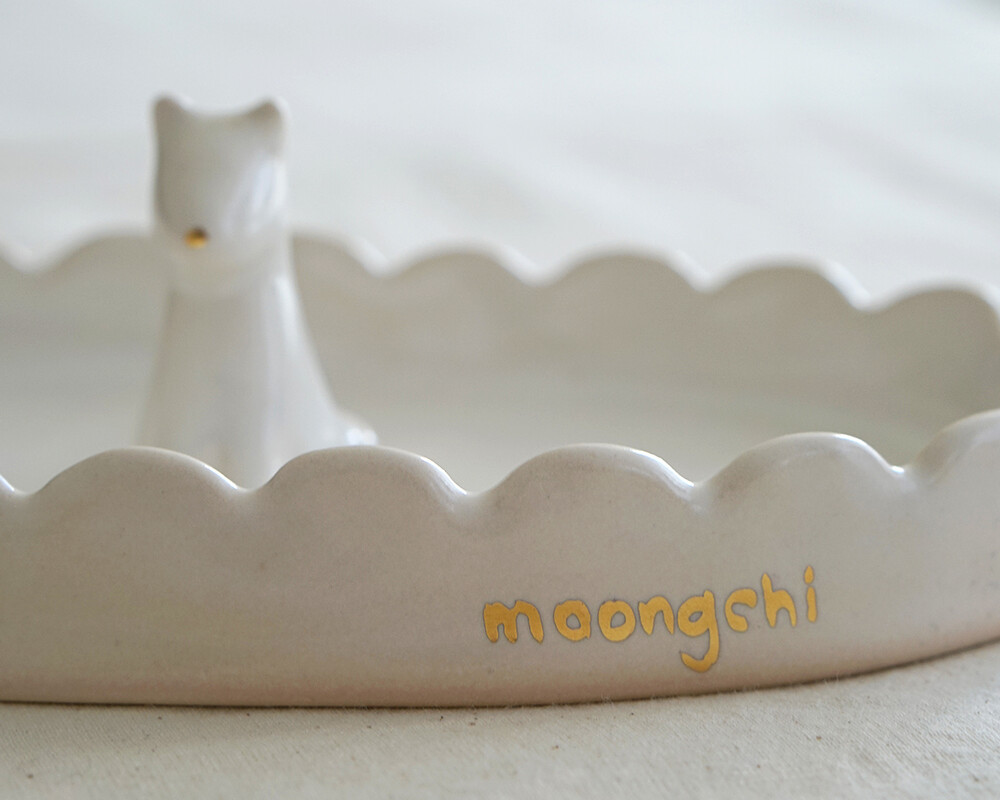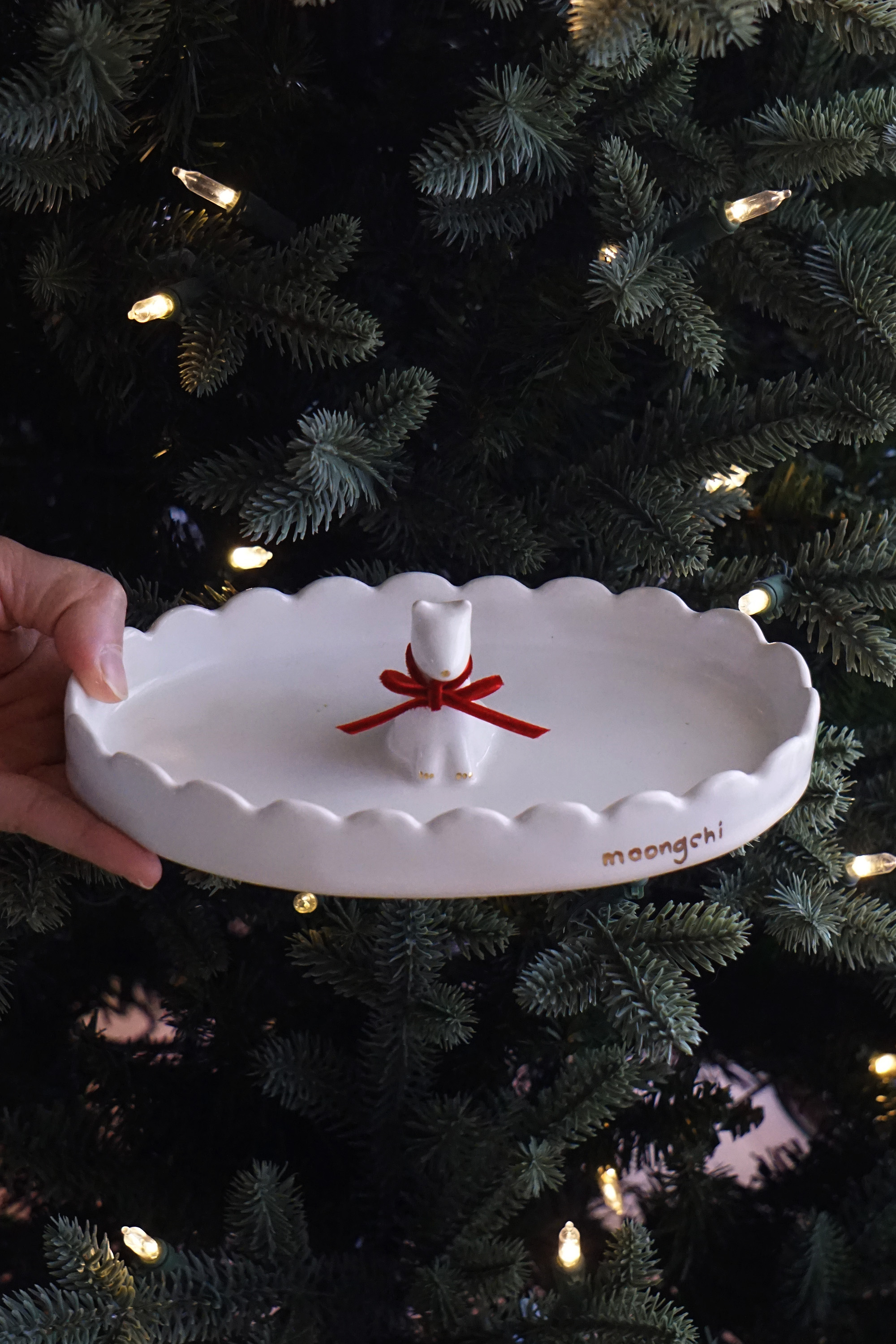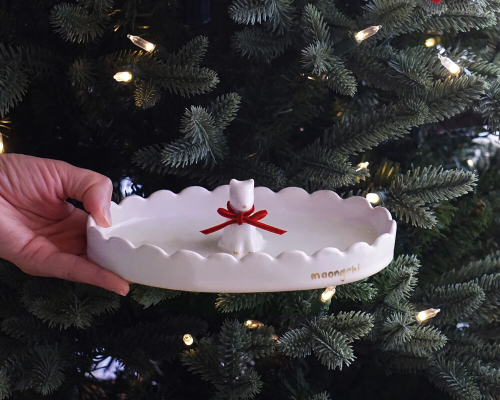 잔잔한 곡선으로 둘러싸인 테두리 디자인에 따뜻한 톤의 화이트 유약을 입히고 수금 디테일을 넣어 크리스마스 감성을 은은하게 더해주었어요.