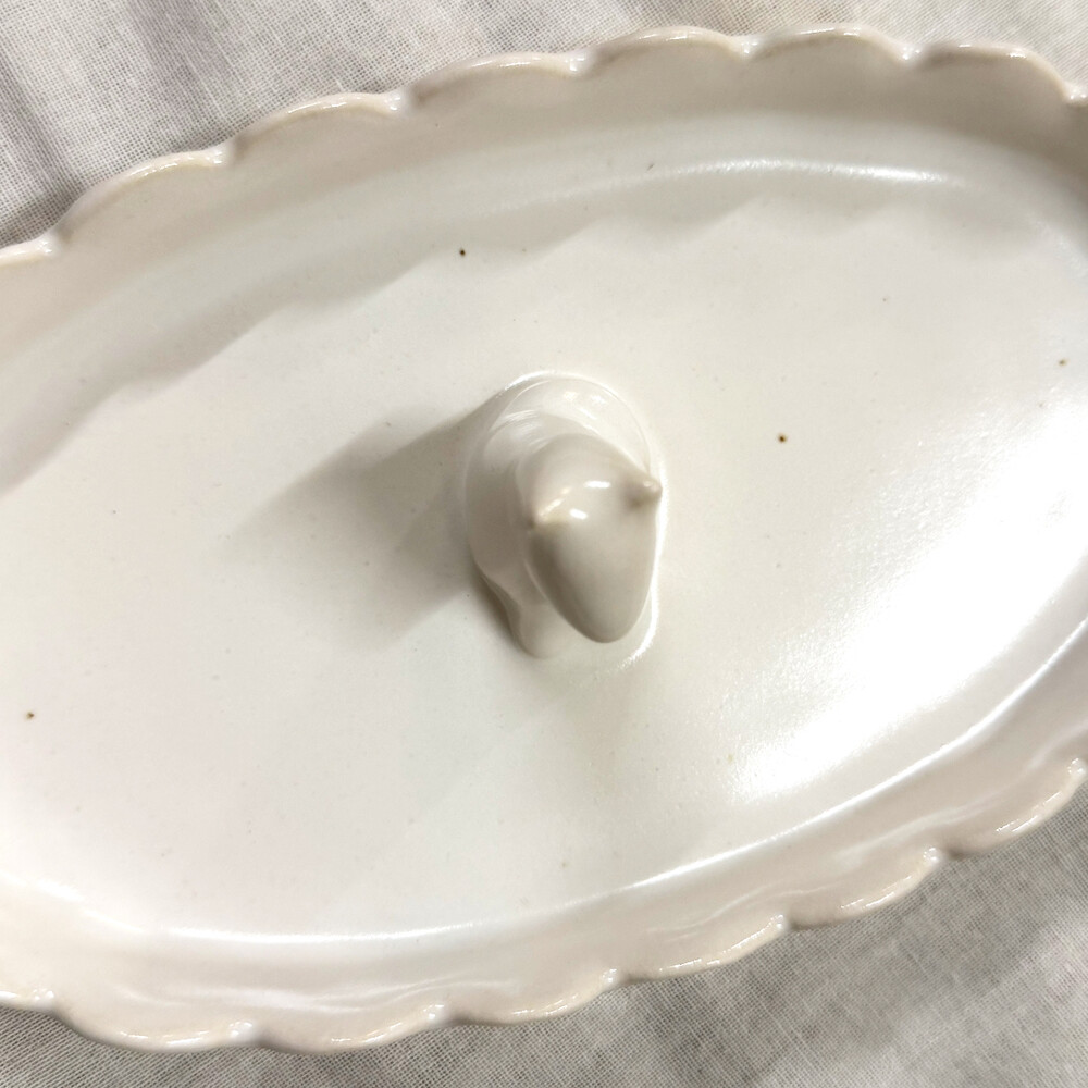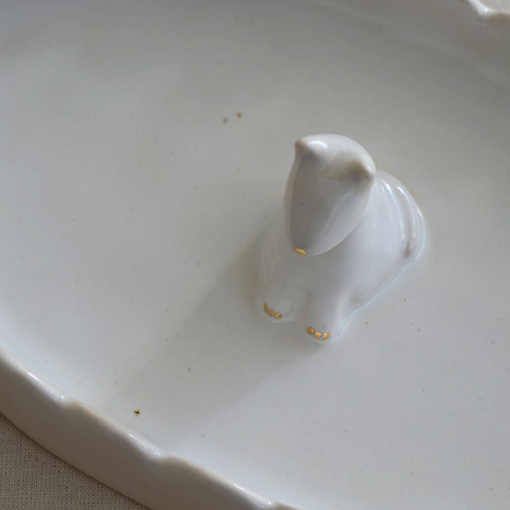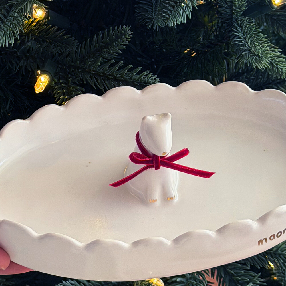 잔잔한 곡선으로 둘러싸인 테두리 디자인에 따뜻한 톤의 화이트 유약을 입히고 수금 디테일을 넣어 크리스마스 감성을 은은하게 더해주었어요.