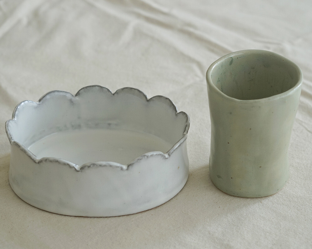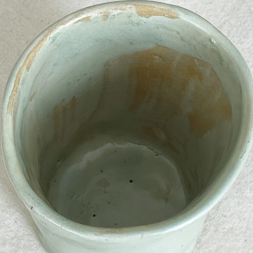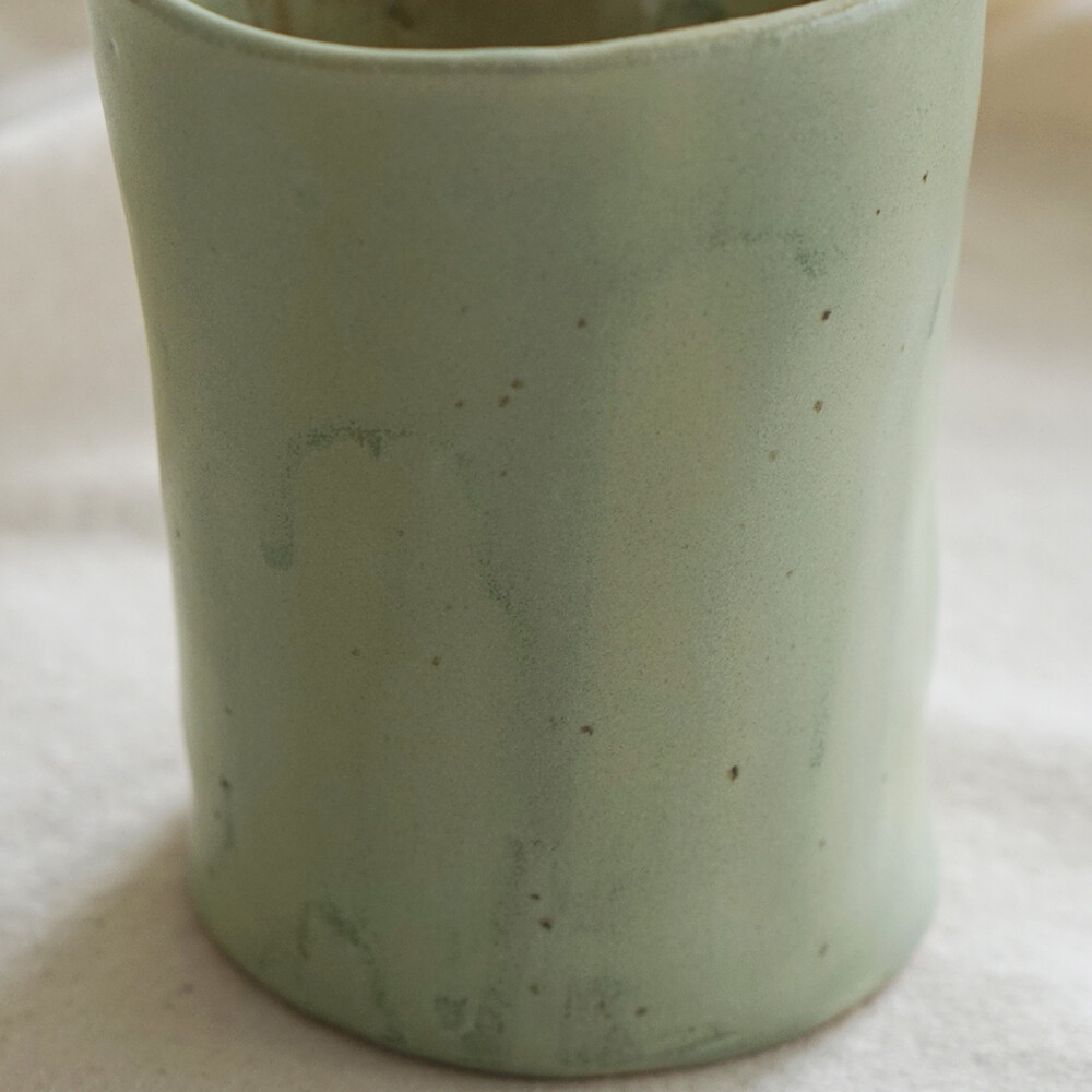자연스럽게 얼룩지듯 흐른 유약 자국은 말차 라떼 거픔위에 남은 흔적처럼 잔잔하고 부드러운 느낌을 줍니다.