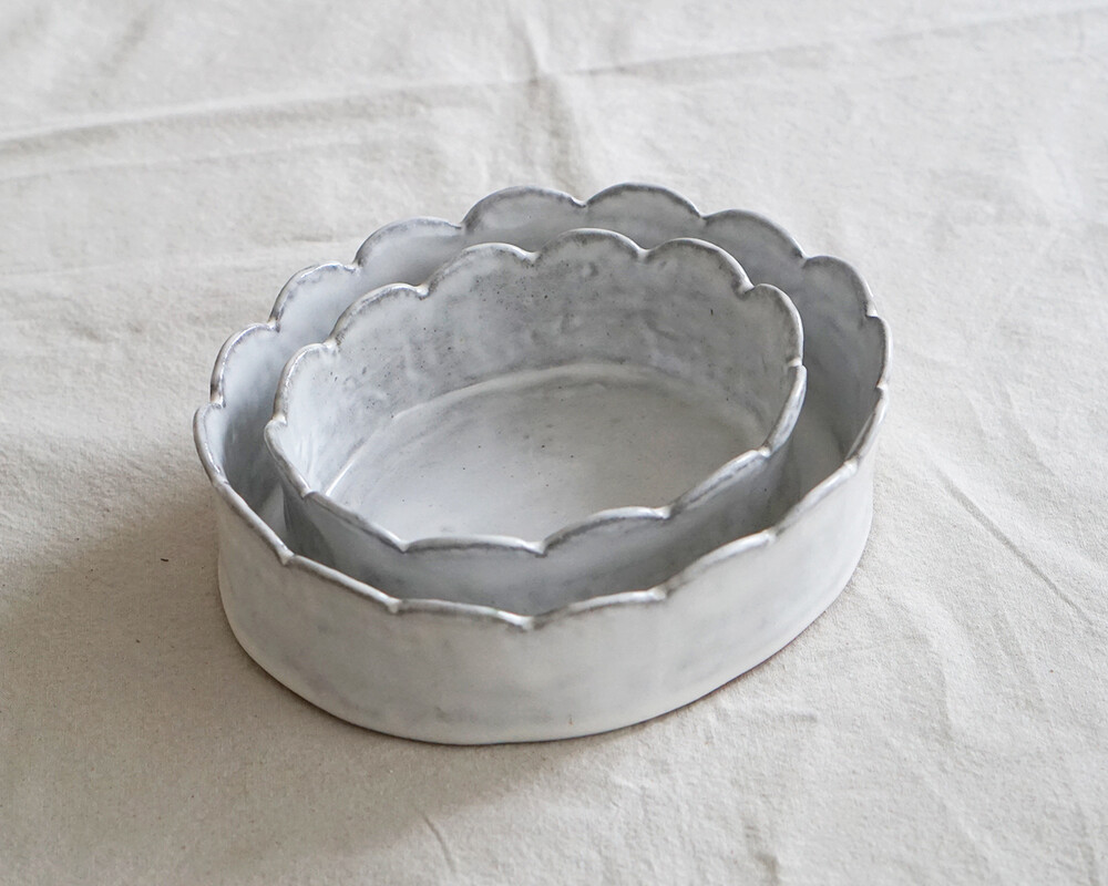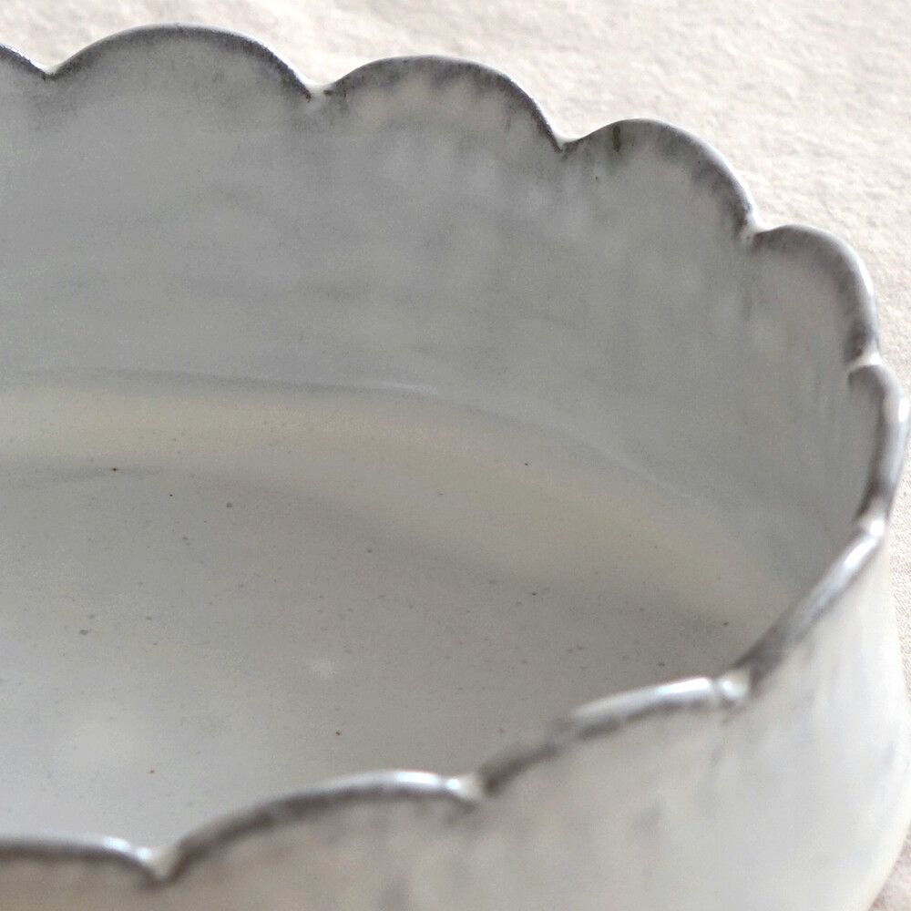 자연 그대로의 선을 닮은 우아한 컷아웃 테두리와 은은한 회색빛 유약이 새벽 안개가 깔린 정원의 한 장면 같은 Garden Oval Bowl