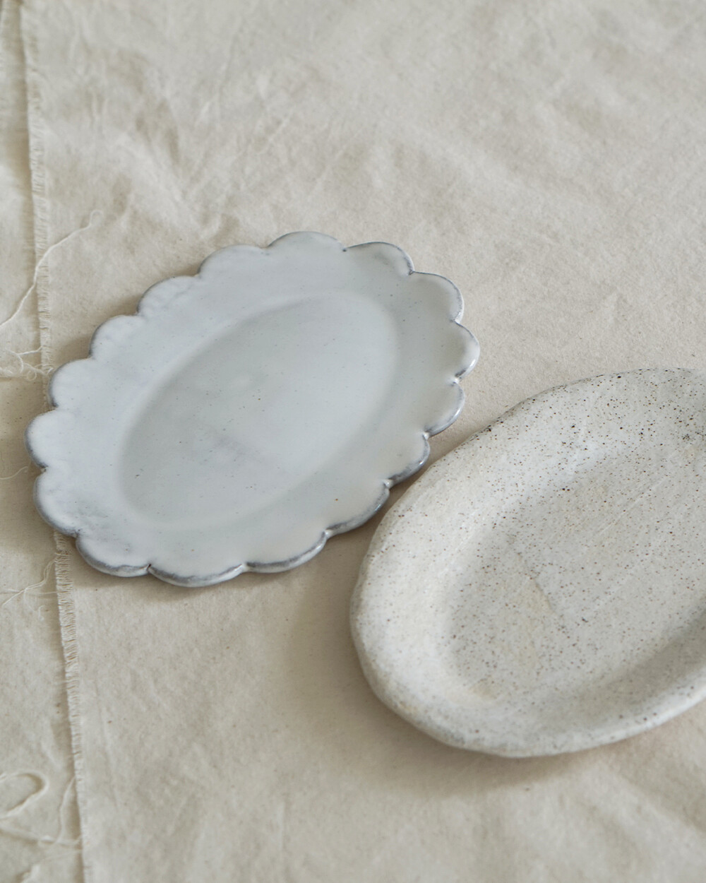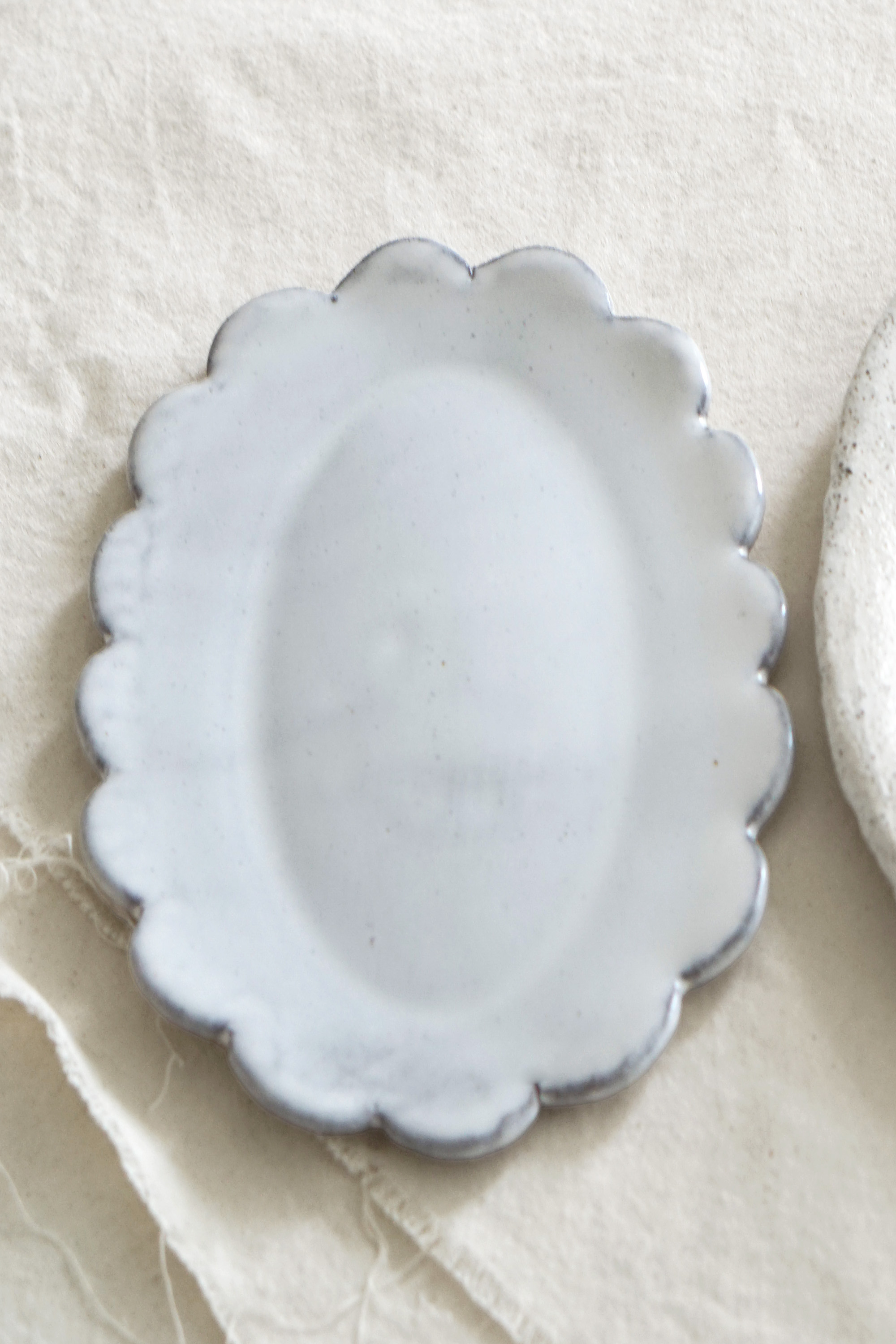 테두리의 부드러운 곡선과 손자국이 만들어낸 섬세한 디테일이 매력적인 플레이트입니다.